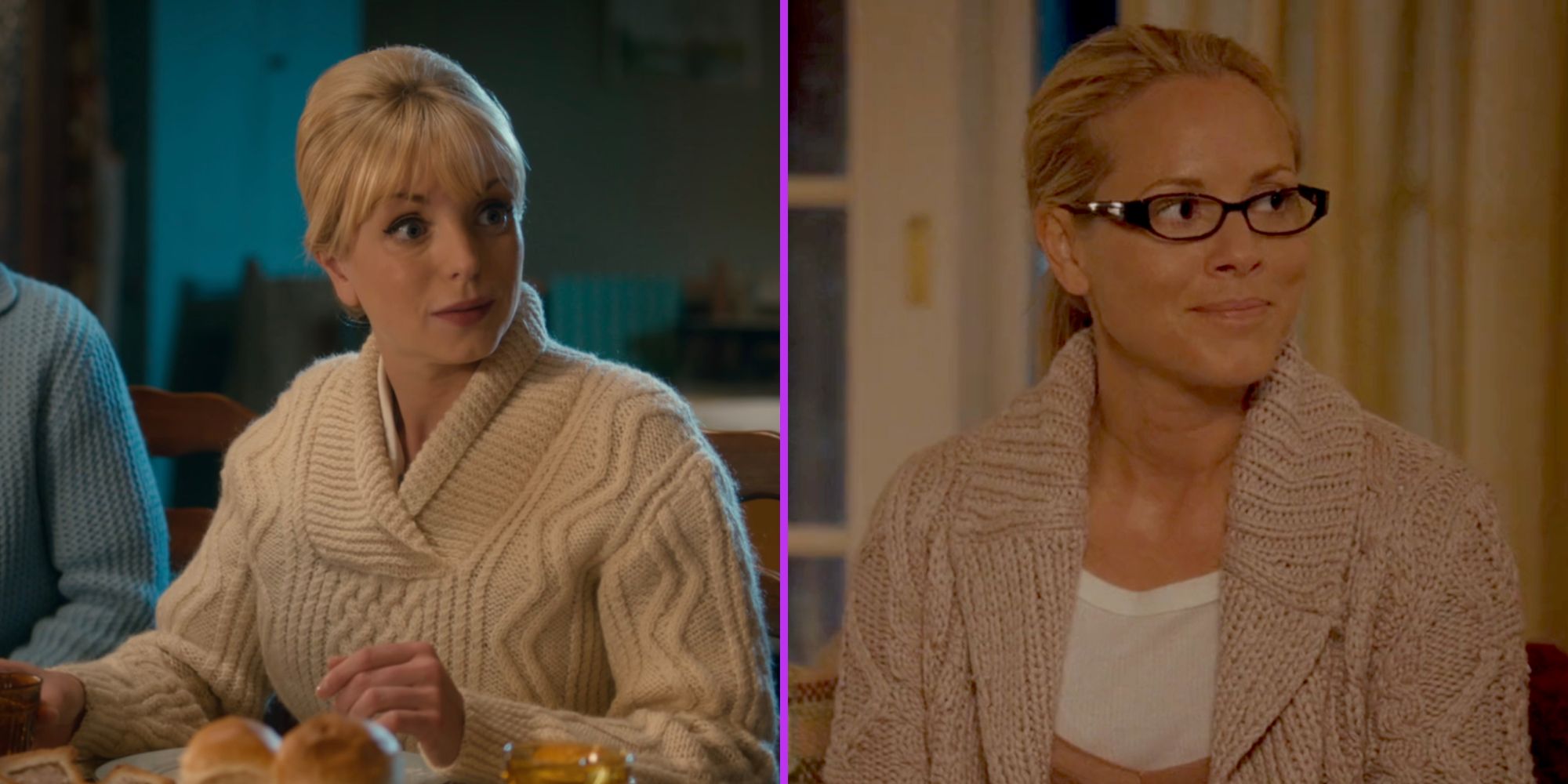 Who has the better sweater? 1️⃣ Trixie Franklin (Helen George) in CALL THE MIDWIFE 2️⃣ Jocelyn (Maria Bello) in THE JANE AUSTEN BOOK CLUB 📊 Show results