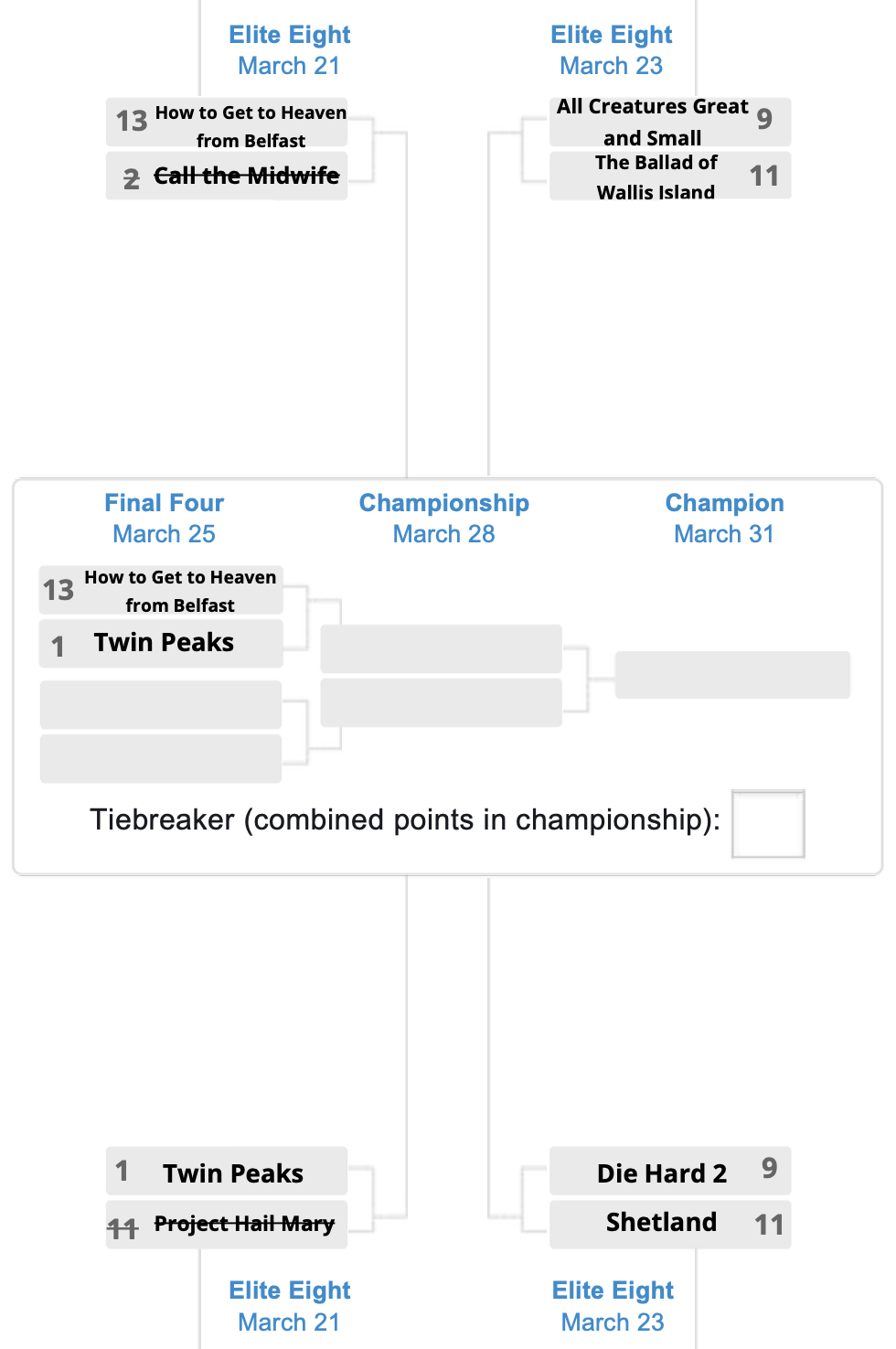 Now let’s see who will join Twin Peaks and How to Get to Heaven from Belfast in the Final Four.